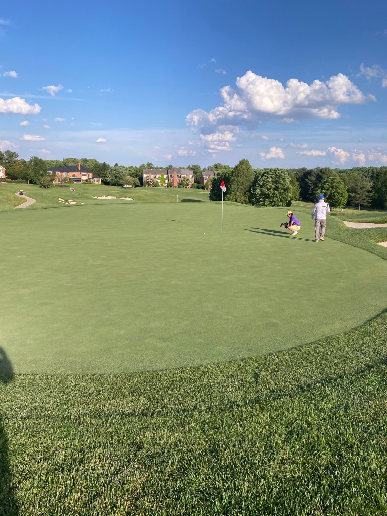 On the short par-4 14th, I gave it everything I had to get on the green in one and came up just short. My drive travelled 230 to the left greenside bunker. This shot was a tough one, given my lack of bunker practice, the unraked nature of bunkers in the covid era, and that it was an unusually long bunker shot to a small green that slopes downhill to a water hazard I didn’t even know existed. Anyway, now that I got my excuses out of the way, I hit the bunker shot too low and it went in the water, and I wound up making double on an easy hole.